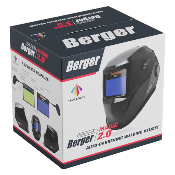 A BERGER automata fejpajzs MAGIC 2.0 4S metálfekete a MAGIC sorozat csúcskategóriás változata, amelyet professzionális felhasználásra terveztek. A hőálló polipropilénből készült felhajtható pajzstest kiváló védelmet nyújt a hő, a szikrák és a fröccsenő anyag ellen. A pajzs 4 ívérzékelős szenzoros rendszerrel működik, amely rendkívül gyors és stabil aktiválást biztosít minden hegesztési környezetben.