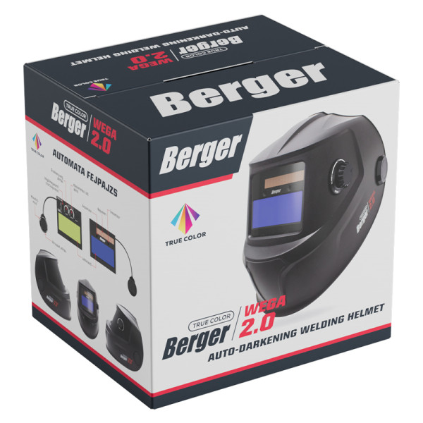 BERGER automata fejpajzs WEGA 2.0 fekete – Professzionális hegesztőpajzs gyors reakcióval és True Color optikával