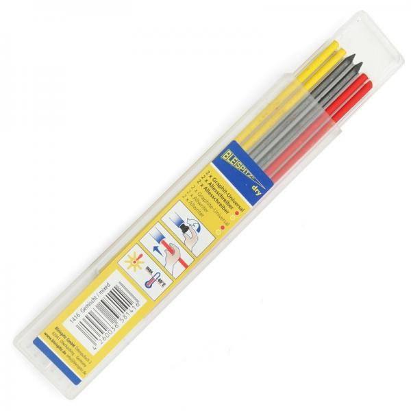 • Mindent író ceruzabetét: sima és sötét felületek jelölésére alkalmas sárga és piros színű speciális vízálló ceruzabetét