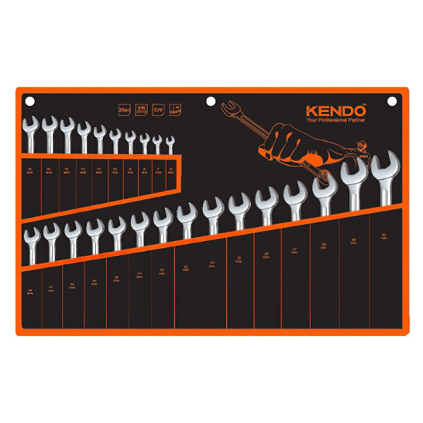 KENDO Csillag-Villás Kulcskészlet – 25 Részes, 6-32 mm, Cr-V