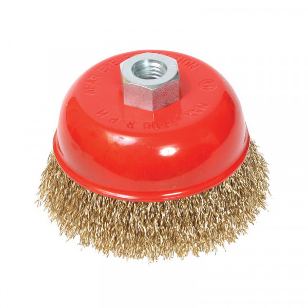 • Erős, acélházba rögzített, hullámos, nemesacél szálú, menetes rekord fazékkefék sarokcsiszoló gépekhez