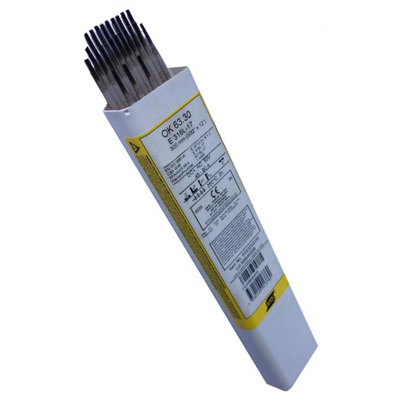 Az ESAB OK 6330 elektróda rutil-savas bevonatú, extra alacsony karbontartalmú (ELC) hegesztőelektróda a 18Cr12Ni3Mo (AISI 316L) ötvözésű ausztenites korrózióálló acélok hegesztéséhez. Szintén jól alkalmazható hasonló összetételű, stabilizált anyagokhoz, kivétel ha az alapanyag teljes kúszásállósága az elvárás. Az OK 63.30-nak nagyon jók az ívgyújtási és ívújragyújtási tulajdonságai, ami mellett negyon tetszetős varratfelszínt hoz létre. Salakja önleváló. A bevonat LMA típusú (Low Moisture Absorption) azaz alacsony nedvszívóképességű.