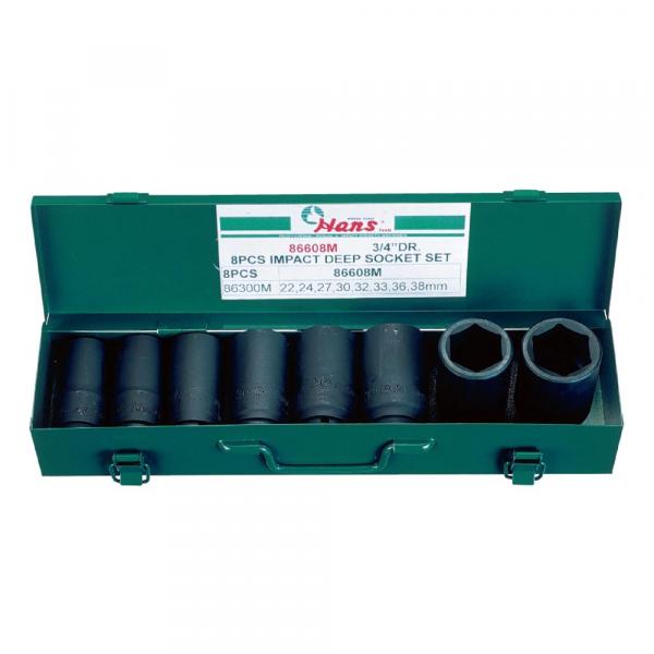Gépi dugókulcsfej készlet hosszú 3/4" 8r. 22-38mm HANS 86608M