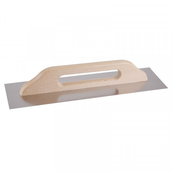 A penge edzett rozsdamentes acélból készült. Csempék és burkolatok alá ragasztók felhordására, valamint esztrichek, stukkó, vakolatok, tömítőanyagok és egyéb építőanyagok felhordására használják. Extra erősített masszív fa markolattal, mely a két kézzel történő használatra is alkalmassá teszi a simitót. Lemezvastagság 0,7mm.