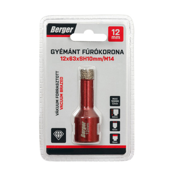 BERGER menetes gyémánt fúrókorona 12x63xSH10mm/M14