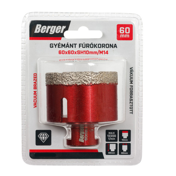 BERGER menetes gyémánt fúrókorona 60x60xSH10mm/M14