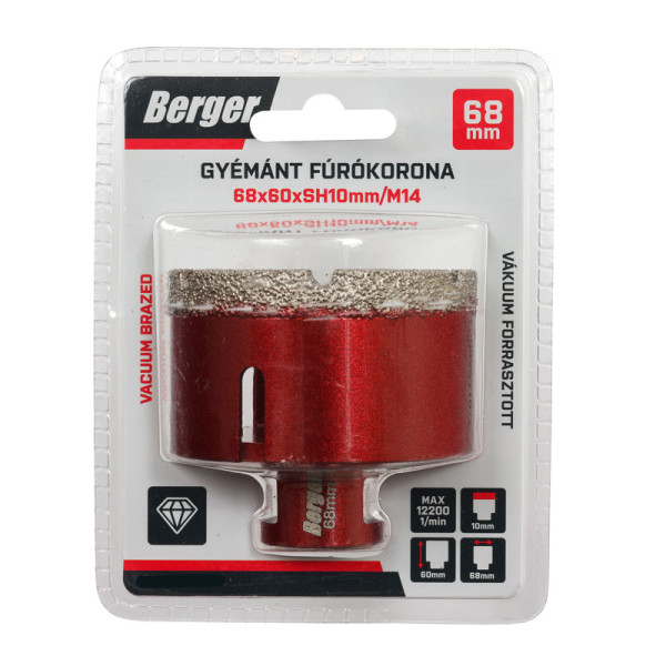 BERGER menetes gyémánt fúrókorona 68x60xSH10mm/M14