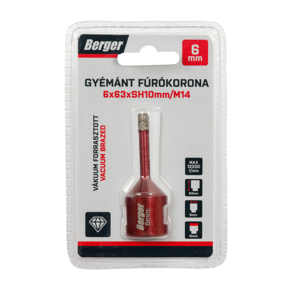 BERGER menetes gyémánt fúrókorona 6x63xSH10mm/M14