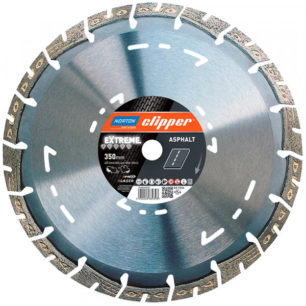 A Norton Clipper Extreme Asphalt penge rendkívül gyors vágási teljesítményt és pontosságot biztosít. Ideális gyémánt fűrészlap minden nagy sebességű fűrészhez és padlófűrészhez aszfalt, beton feletti aszfalt és koptató építőanyagok vágásához.