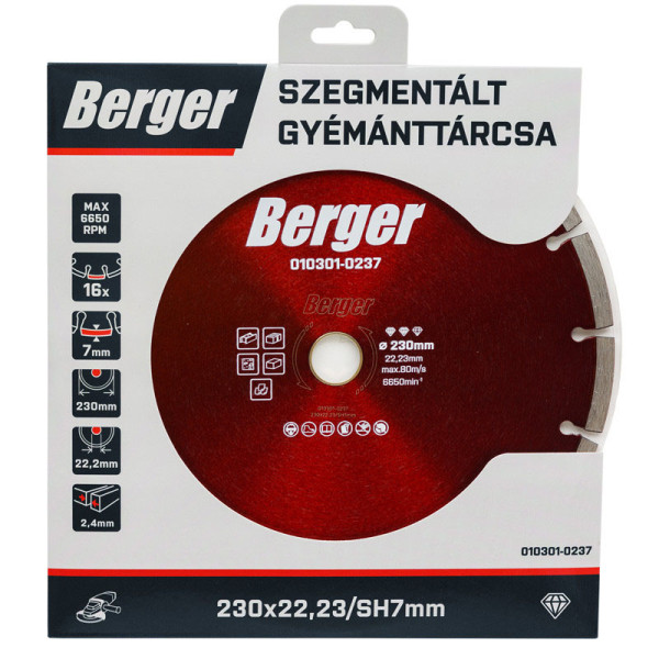 BERGER szegmentált gyémánttárcsa 230x22,23/SH7mm