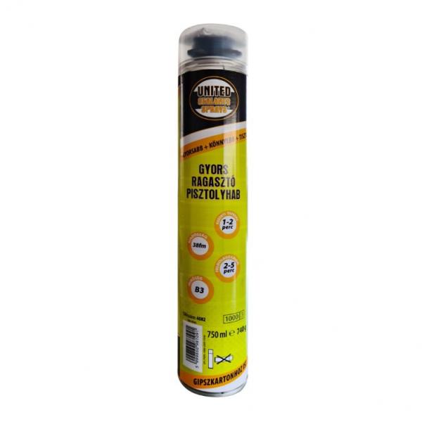 A United Sealants Gyors Ragasztóhab egy egykomponensű gyors ragasztóhab, építőipari ragasztó és hézagtömítő kül-, és beltéri munkákhoz. A legtöbb építőipari felületre gyorsan és erősen ragaszt, kiváló hang-, és hőszigetelő hatás. A felület előnedvesítésével jobb tapadás érhető el. Hőszigetelő táblák felragasztására: PIR, PUR, EPS, XPS, PF, ásványi gyapot. Gipszkarton, gipszkötési faforgácslap, rétegelt lemez ragasztására. További építőanyagok: OSB, fa, parafa, kőzetgyapot, beton, természetes kő, fémfelületek, dekorációs elemek, bitumen alapú fedések, kemény műanyagok (PVC), merev PUR, fémek.