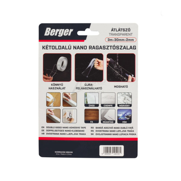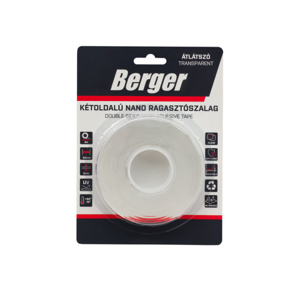BERGER kétoldalú nano ragasztószalag 3mx30mm/2mm víztiszta