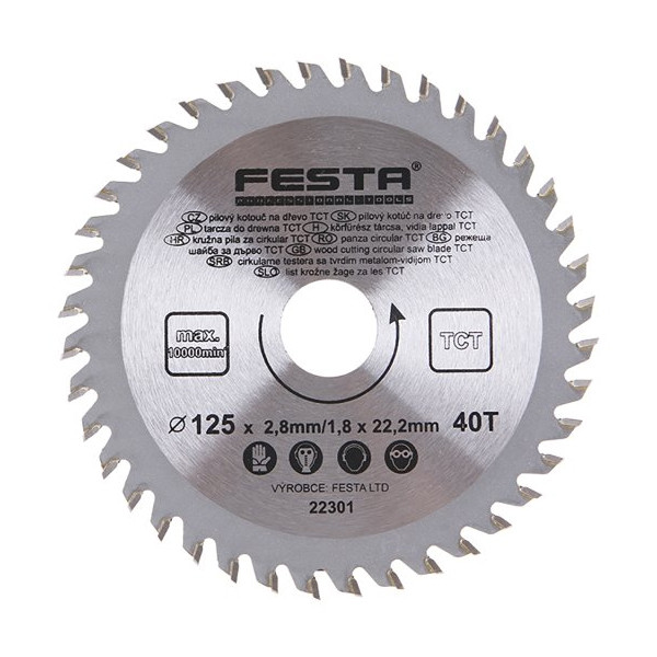 Lev Festa TCT körfűrész tárcsa, körfűrészlap 125x22mm, Z40, fához, Vídia lappal