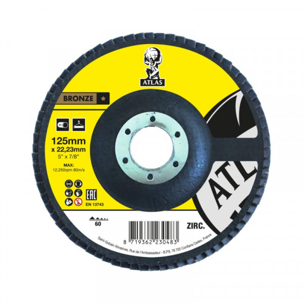 Agresszív nagy hatékonyságú csiszolás! Norton Saint Gobain Abrasives ATLAS inoxos KX663 alapanyagból készült kúpos lamellás csiszolókorong cirkónium csiszolószemcsével fémekhez, rozsdamentes, inox anyagokhoz. A jó minőségű műgyanta kötés és csiszolóanyag hosszú élettartamot, nagy hatékonyságot garantál.
