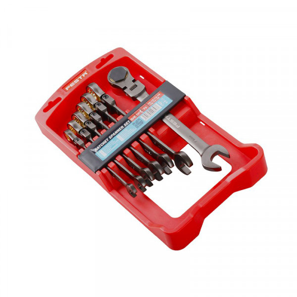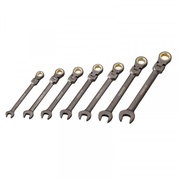 Racsnis csuklós csillag-villáskulcs készlet 7 részes 10-19mm Festa