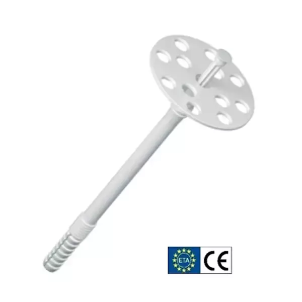 A műanyag csappal ellátott szigetelésrögzítő dübel könnyűbetonba és üreges téglára való rögzítésekhez alkalmas. Kemény, ill. félkemény (pl. polisztirol, poliuretán és parafa alapanyagú) szigetelőanyagok rögzítésére használható. A szigetelésrögzítő tányér felülete garantálja a következő réteg (vakolat) tökéletes tapadását. A műanyag csappal ellátott szigetelésrögzítő dübel alapanyaga polietilén, mely UV sugarak elleni védőadalékkal ellátott. Tárcsa átmérő 60mm.